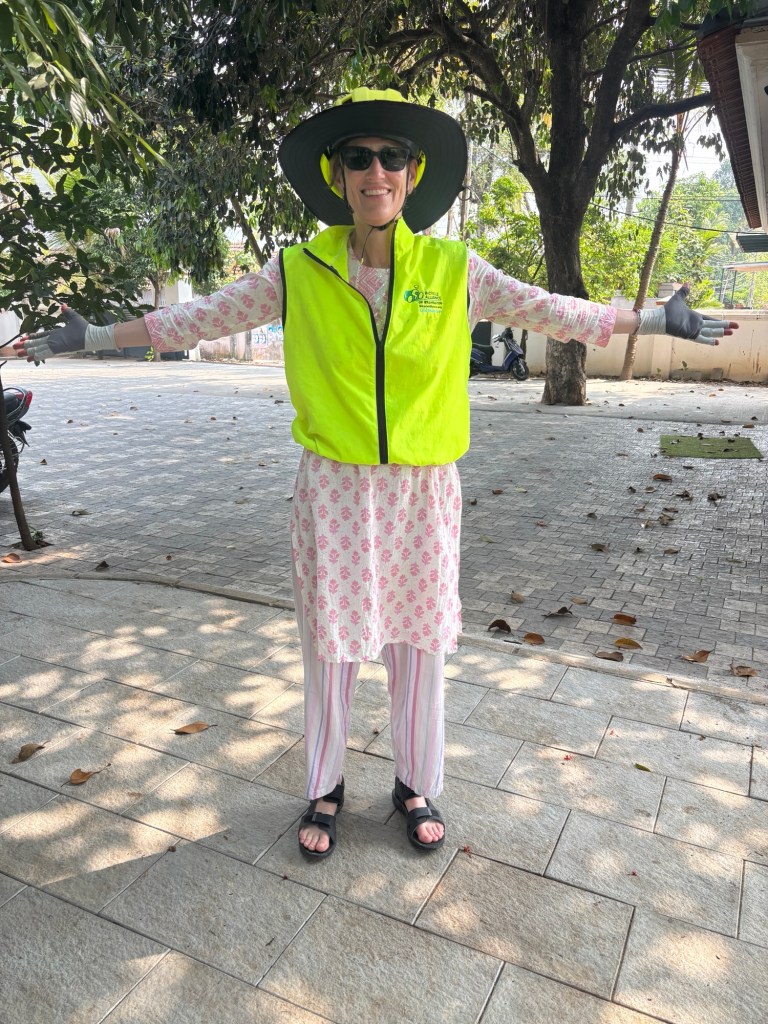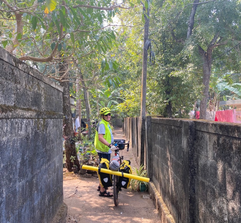 Danielle writes: All of my fears about biking in India have been for naught. To Matt, Richard’s riding partner in 2024, I am sorry you are missing biking in Kerala. So far, it’s been delightful. Drivers, for the most part, stay on their side of the road. The dogs ignore or are afraid of two neon-vested riders. There are no sacred cows in the middle of the road refusing to budge. And thankfully, the homestays and hotels have been great – huge beds, hot and cold water, ceiling fans, sometimes even heat pumps for air conditioning, and toilets that flush!