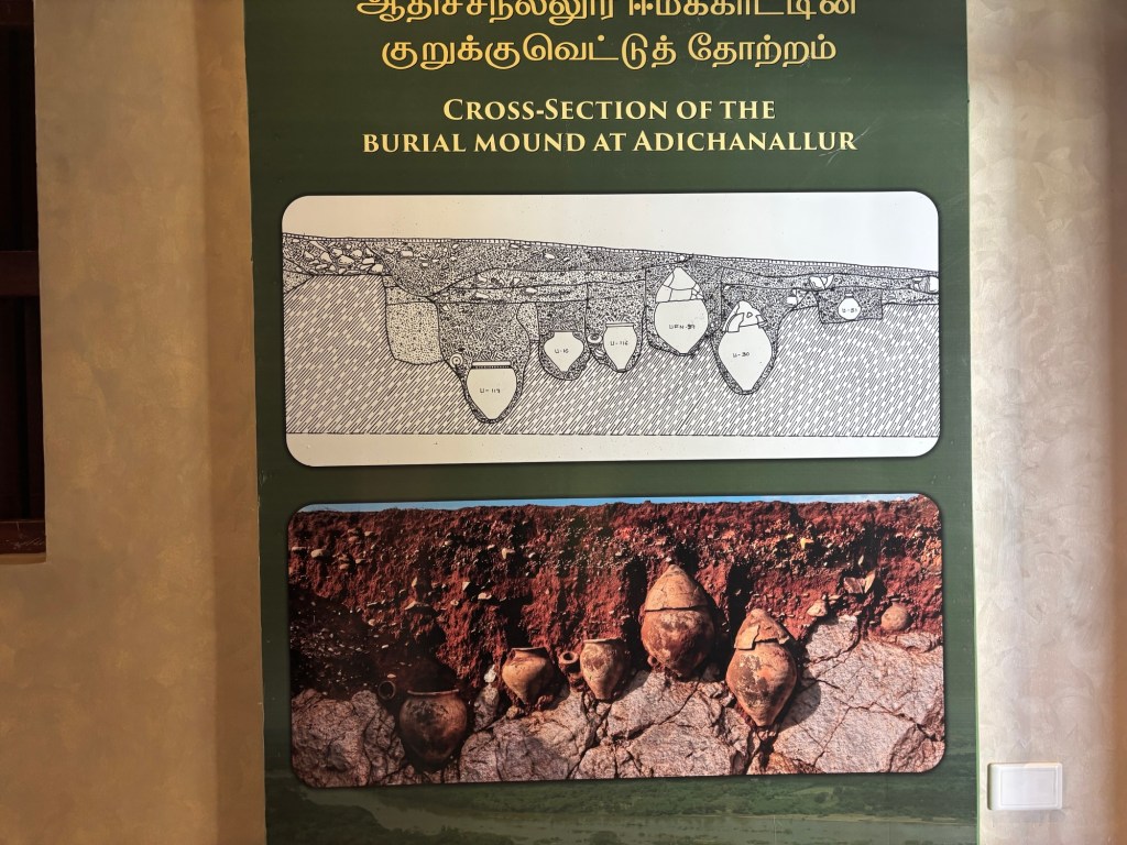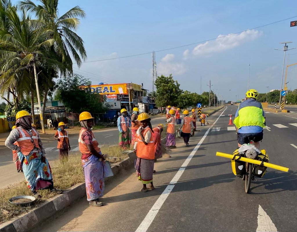 Today’s rest day, unplanned and in what we thought was the middle of nowhere, put us square in the middle of Tirunelveli, which has an incredible set of stone temples and a fantastic museum, detailing recent archeological digs (3 yrs ago) that upend what we know about the Iron Age. Richard was awestruck, so I am sure he’ll post something about it.