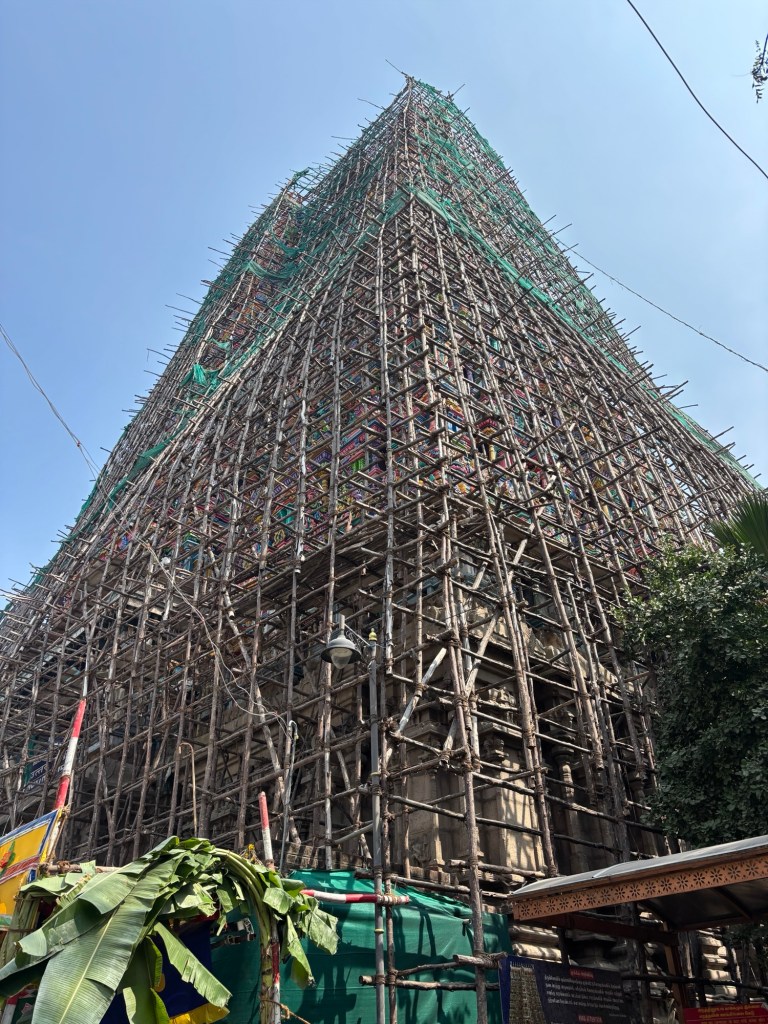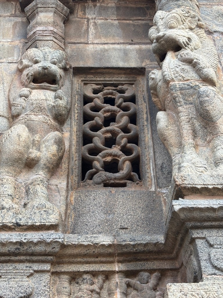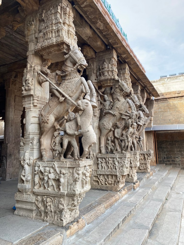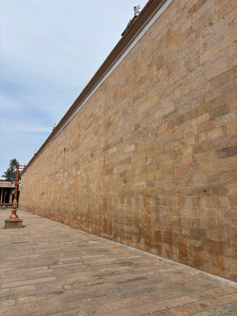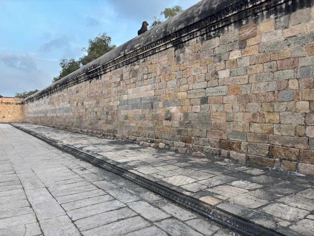 The next evolution of Hindu architecture on display in Tamil Nadu is the Hindu temple itself.  These are typically exceptionally large, beautifully walled compounds. The temples themselves are arranged in formal alignments within. Many times these outer walls are multiple, offering layers and layers of strong  defense. It doesn’t take a lot of imagination to read the constant threat the walls rebuffed.