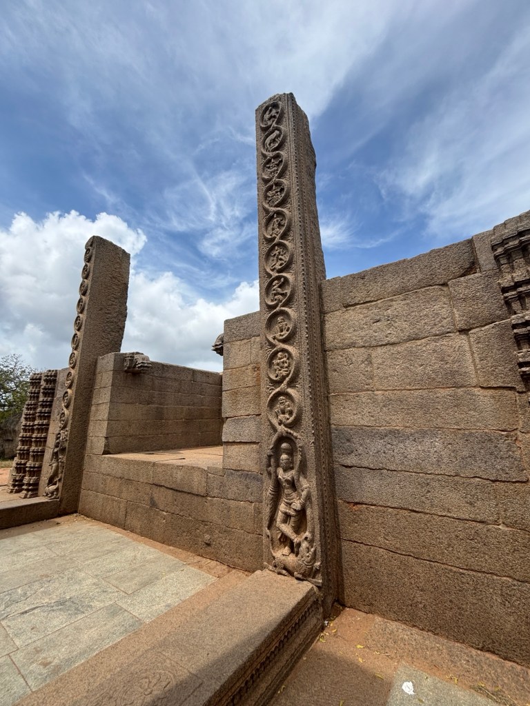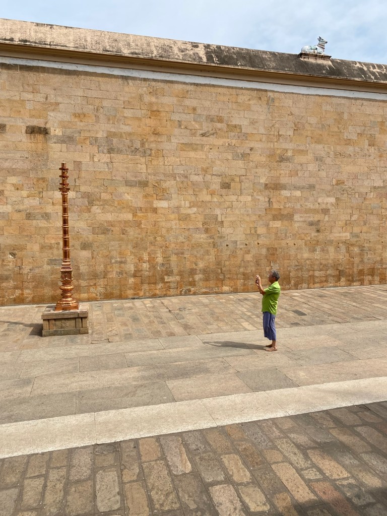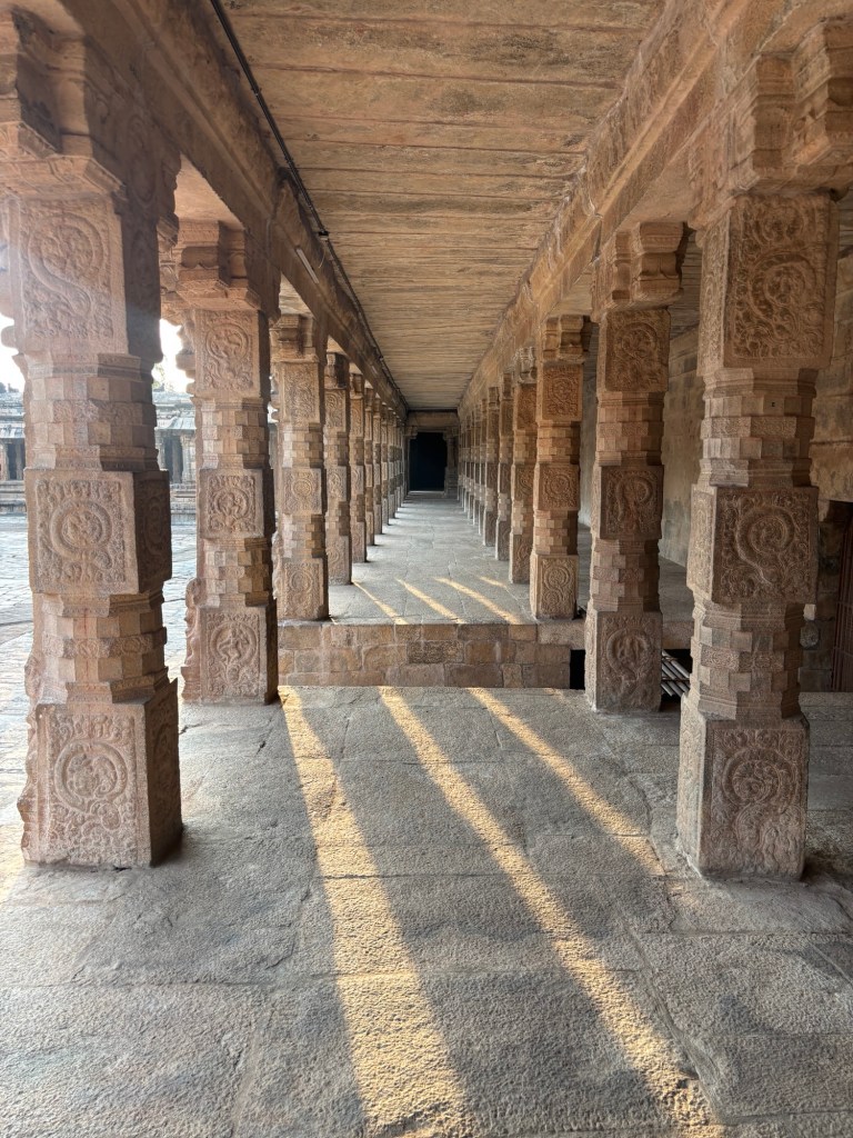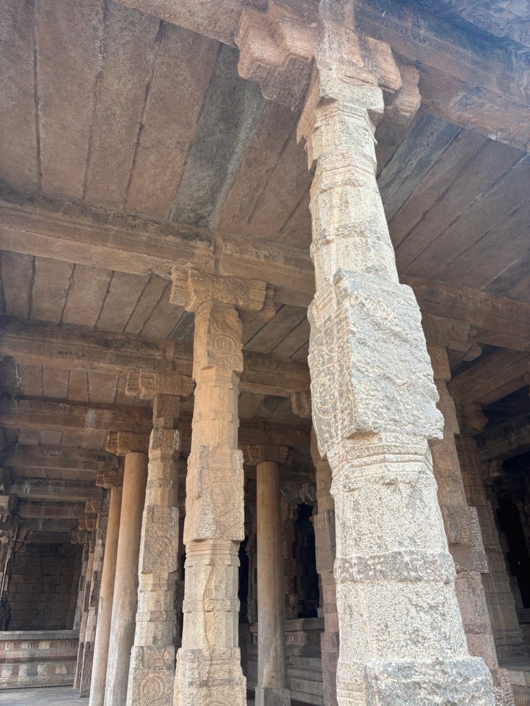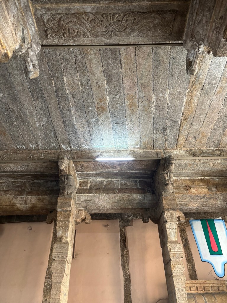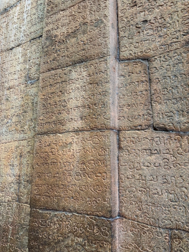 Similar to the famed Step Pyramid at Saqqara, Egypt which pre-dates this work by four millenia, these wall pilasters are woven from the wall blocks. It’s an exceptionally thoughtful detail. Carved in ancient Tamil script, the walls whisper the ancient prayers of the past civilization.