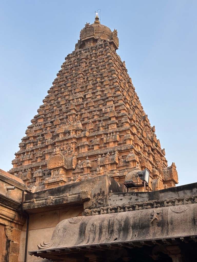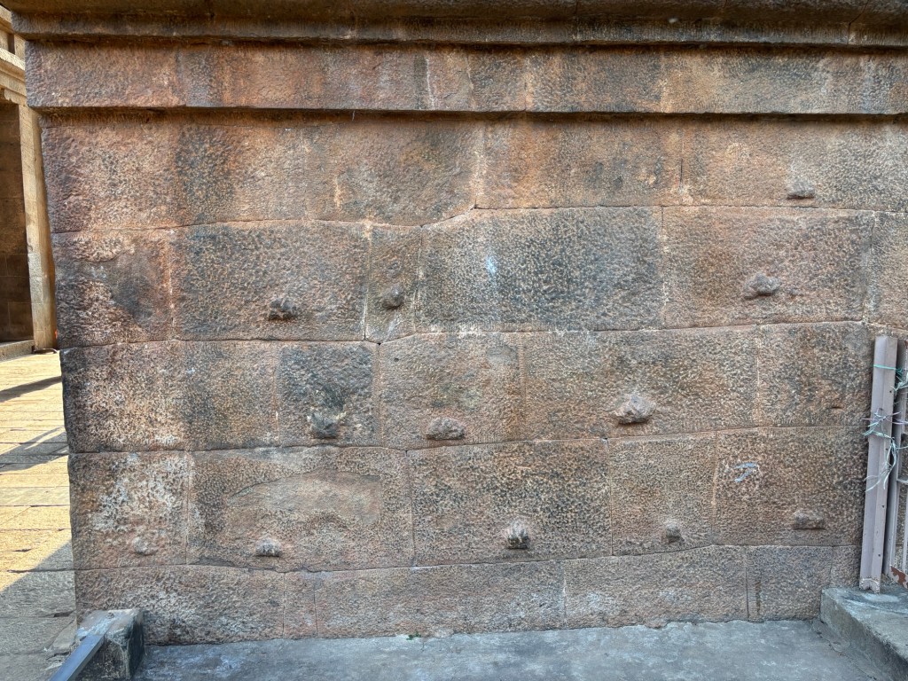 In the fabled city of Thanjavur, the formidable granite tower of the Brihadishvara or Rajarajeshvara Temple is capped with a domed monolithic stupi weighing eighty tons. Its emplacement is thought to have required the construction of an earthen ramp several kilometers long on which a ‘wooden road’ was built.  I’m not sure I subscribe to that theory of placement, but it’s certainly better that ascribing the method to “installation by aliens,” a method often casually suggested by otherwise thoughtful world citizens.