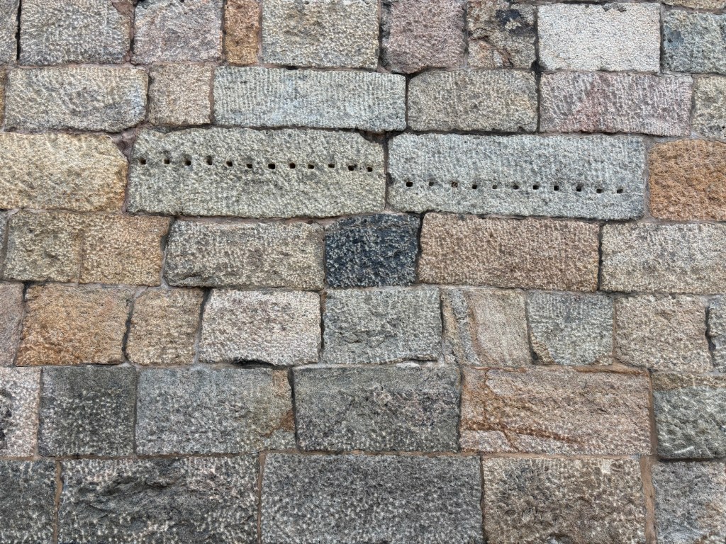 A beautiful example highlighting an extruded (raised) joint, perhaps indicative of a later repointing of the wall by the British.