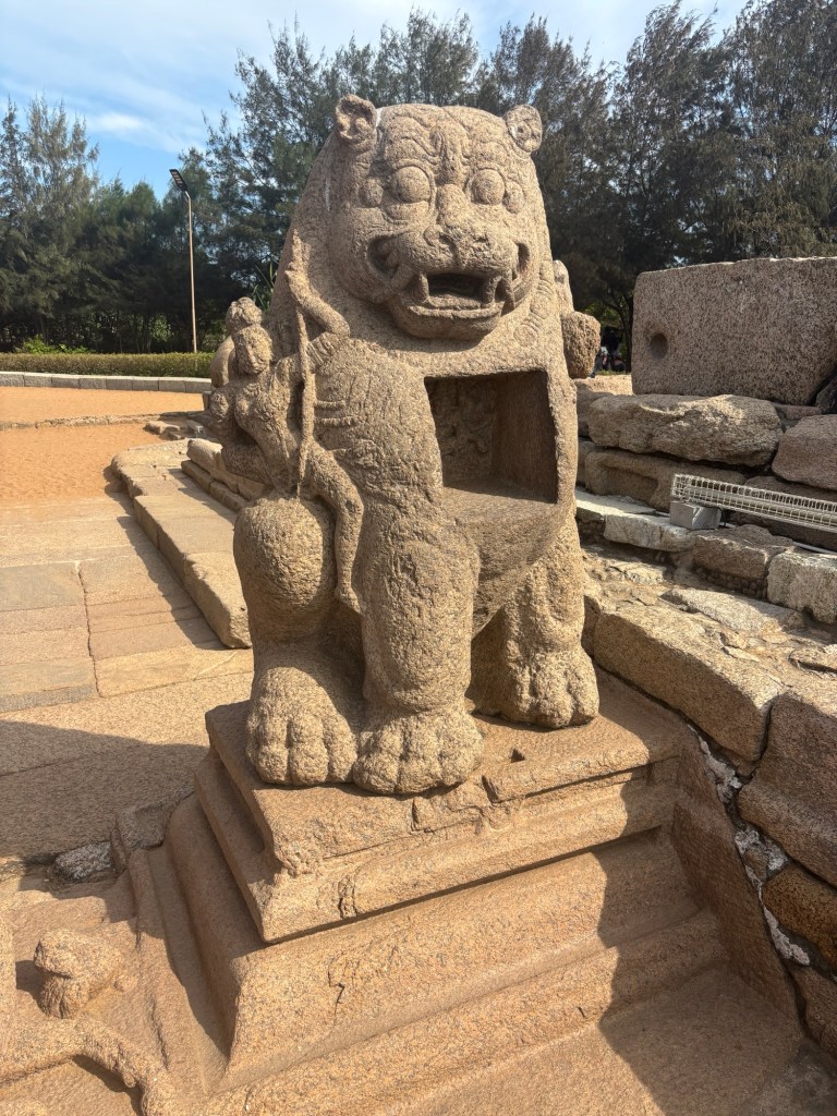 In South India, particularly, stylized, roaring lion figures are prevalent in temple architecture as guardians, representing strength and divine protection.