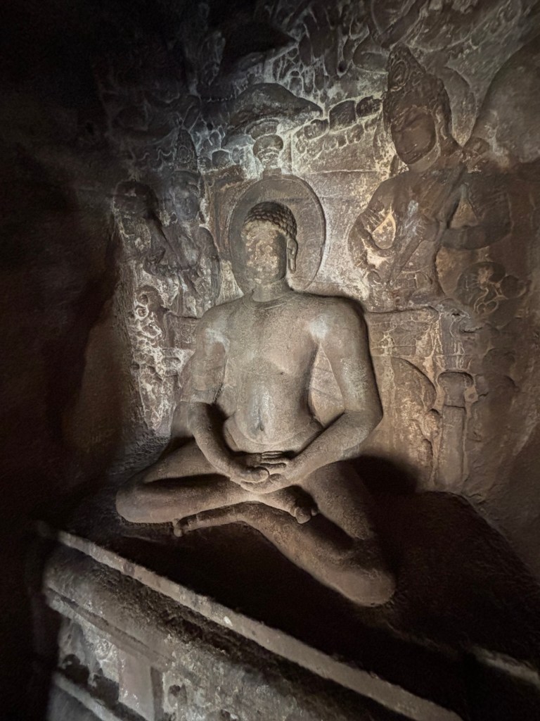 The British photographer Don McCullin describes India as “the most visually exciting place in the world.” I feel that everyday while cycling in here. Yet somehow the Rock Cut Caves, temples that have been meticulously carved into the living rock, really brings this sentiment home. These interior spaces thrill me. Partly it is the light, coming only from the caves entrance, and meticulously manipulated in subtle ways to penetrate the depths of the often cavernous spaces.
